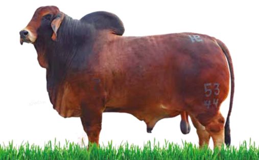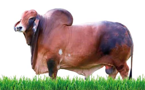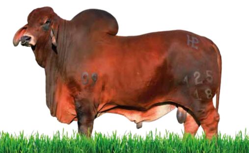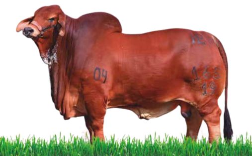 Es uno de los primeros ejemplares de nuestro selecto núcleo genético de toros de la raza Brahman Rojo. Es un ejemplar completo, muy masculino y con gran caracte- rización racial. Se resalta por poseer una giba bien formada, gran amplitud en sus tres tercios, fortaleza de torso y desarrollo en sus testículos y prepucio. Cuenta con equilibrio en funcionalidad, productividad y fertilidad.
